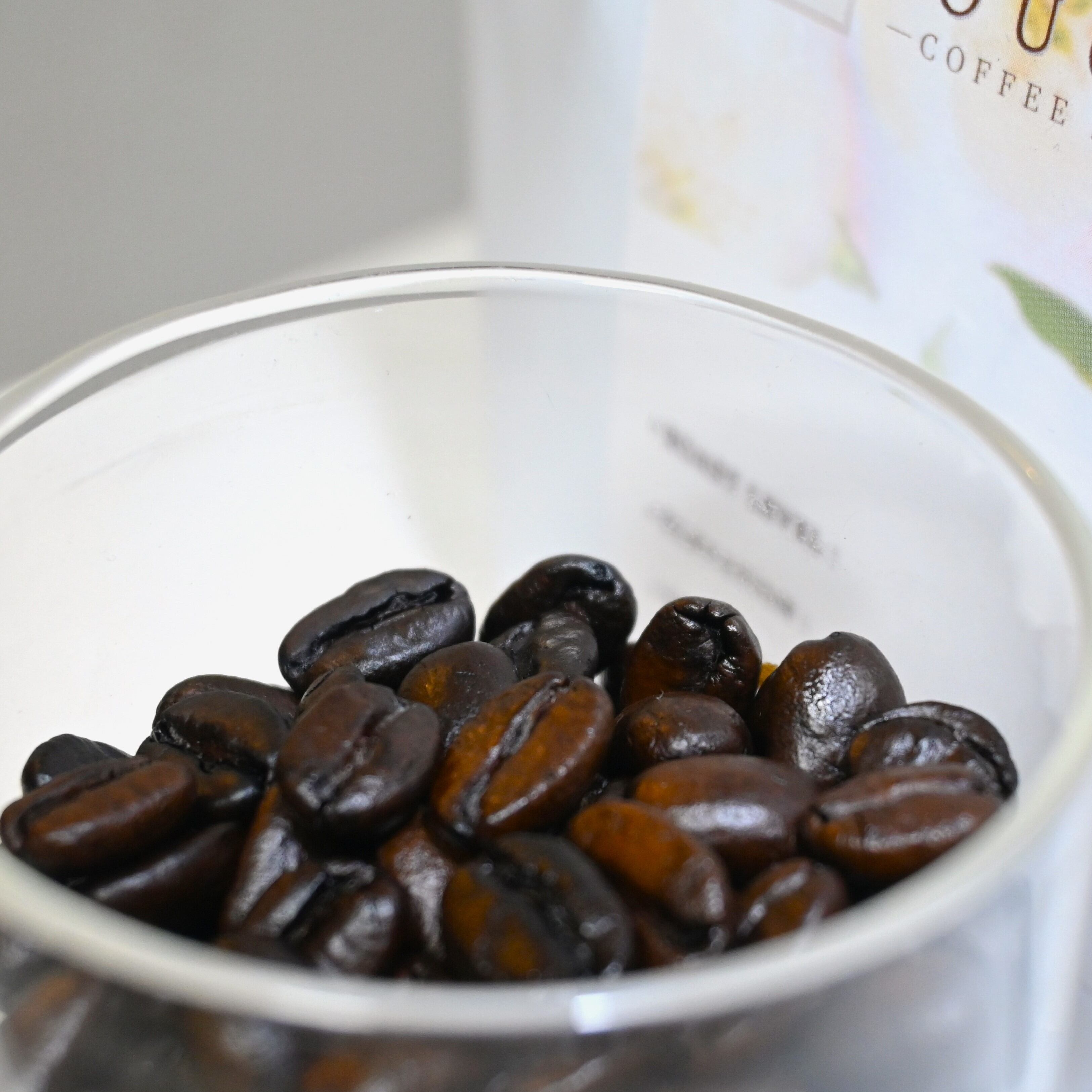 その豆を短い時間で中深煎りに焙煎することで、 軽やかな口当たりとなるように仕上げております。